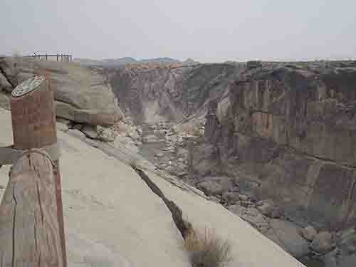 To put this perspective for foreigners to South Africa and people who have seen the Niagara Falls in flood, the Augrabies falls are three times bigger than the Niagara Falls in terms of water going over the falls in a flood season. Niagara in flood only has 2400 cubic meters per second.