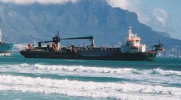 It can either pump the dredged sand into its 9000 cubic metre hold and